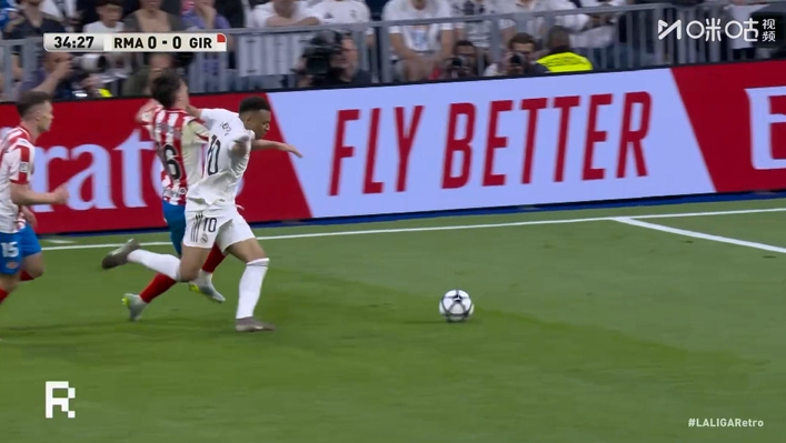 04月11日讯 西甲第31轮,皇马对阵赫罗纳。35分钟,姆巴佩突入危险区域 ,亚历杭德罗·弗朗西斯倒地,裁判 吹罚姆巴佩违例 。姆巴佩不解,找裁判 抗议染黄。