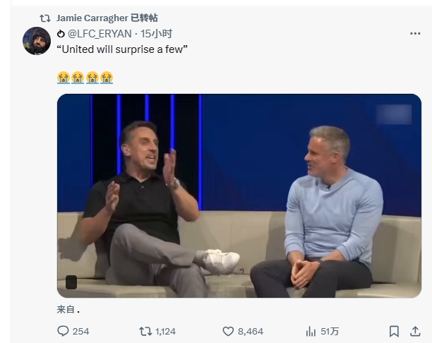 08月28日讯 曼联点球大战不敌英乙球队格林斯比赛后,卡拉格转发了老搭档内维尔的一段采访视频。