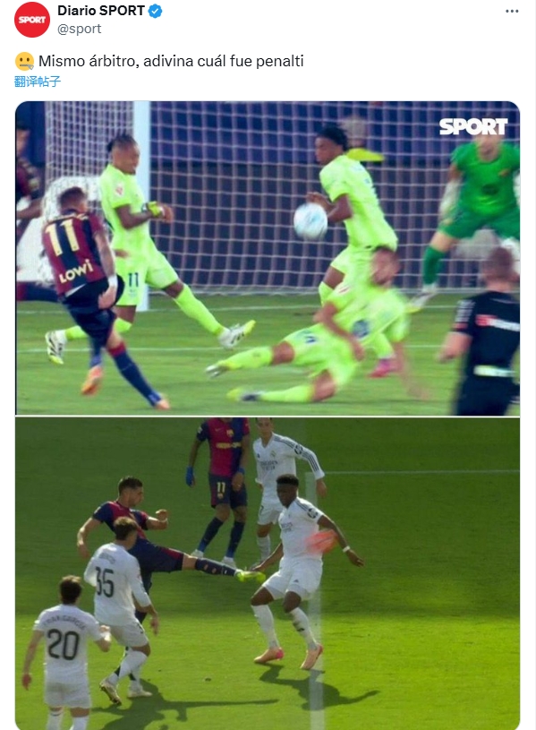 《逐日体育报》晒上赛季琼阿梅尼手球争议质疑判罚:“统一个裁判,猜猜哪个是点球?”