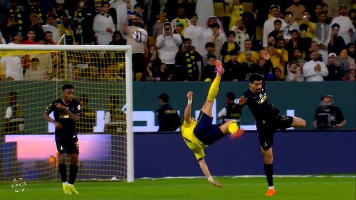C罗本日代表利雅得得胜打进的精彩倒钩