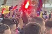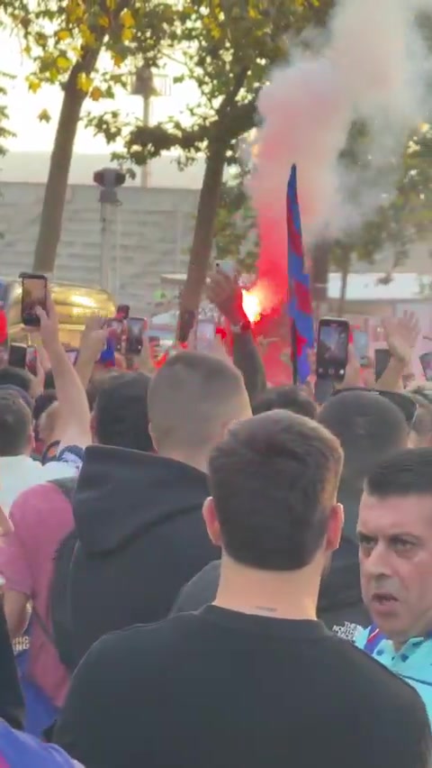赛前,巴萨球迷在球场外聚拢,高喊黑白巴黎的标语。
