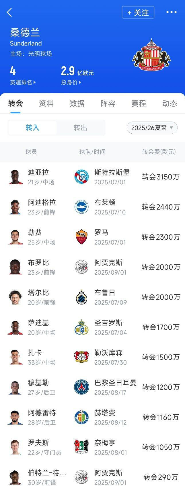 本年夏窗,手脚升班马的桑德兰豪掷1.879亿欧,买入了10余名球员。新赛季他们缔造英超的气势和上赛季判若两队。黑猫的引援大多低调有实力,包括扎卡、萨迪基、勒费、塔尔比、阿德雷特、穆基勒、罗夫斯、马苏亚库等等。而如今桑德兰的主力气势大多齐由这些新援构成。