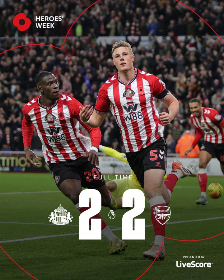 直播吧11月09日讯凌晨英超第11轮,桑德兰镇守主场2-2战平领头羊阿森纳,径直了敌手的零封连胜记载。