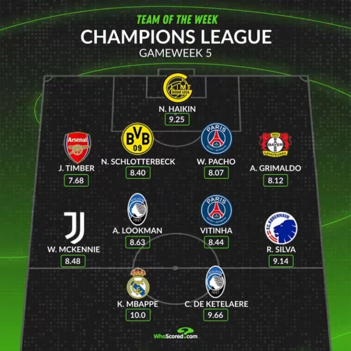 本赛季欧冠创造契机榜:姆巴佩20次居首,维尔茨次席,索博第三
