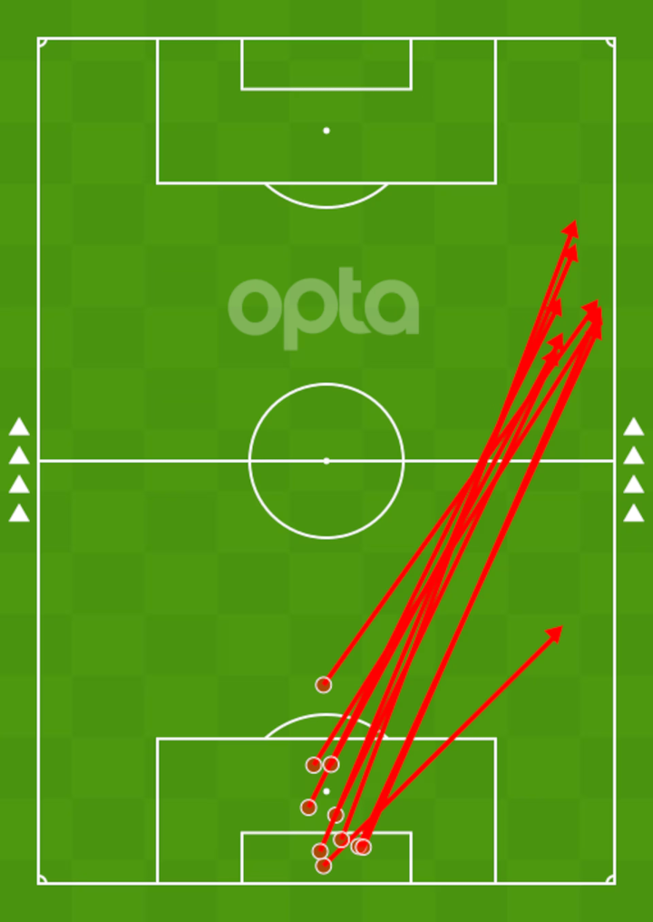 近年来,库尔图瓦在皇马攻击战术组织中的作用明显提升。在阿隆索执教时期,队伍就开始强调球门守护员参与攻击战术发起,而在如今阿韦洛亚执教阶段,这一点依然被延续。面对瓜迪奥拉在比赛中布置的高位紧逼守卫压迫,皇马教练员员组选择利用库尔图瓦的远传战术技术水平巧来直接寻找巴尔韦德。数据显示,库尔图瓦球队本土球场比赛共尝试17次传送,其中10次远分配球权都指向了这名乌拉圭中场核心。