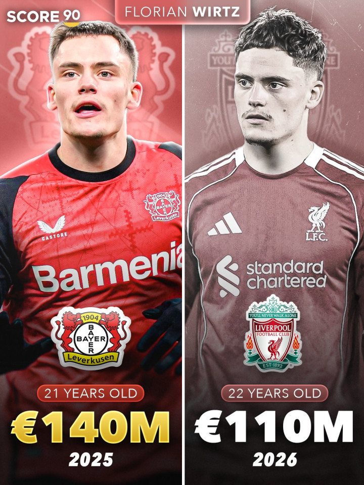 去年7月加盟利物浦时,维尔茨的德回转 价为1.4亿欧元,仅仅过去了不到8个月,维尔茨的身价就下跌到1.1亿欧元,缩水了3000万欧元。