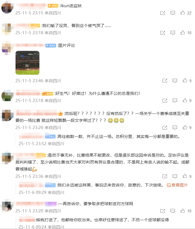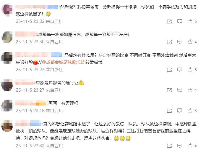 随后成齐蓉城官博在23:14转发足协微博,球迷们在指摘区极度动怒。