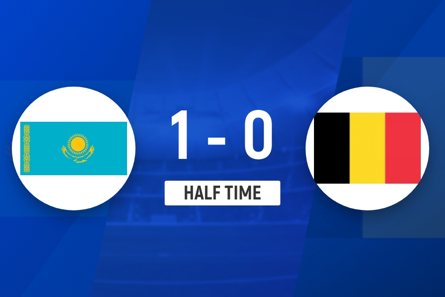 上半场比赛放置,哈萨克斯坦1-0比利时。