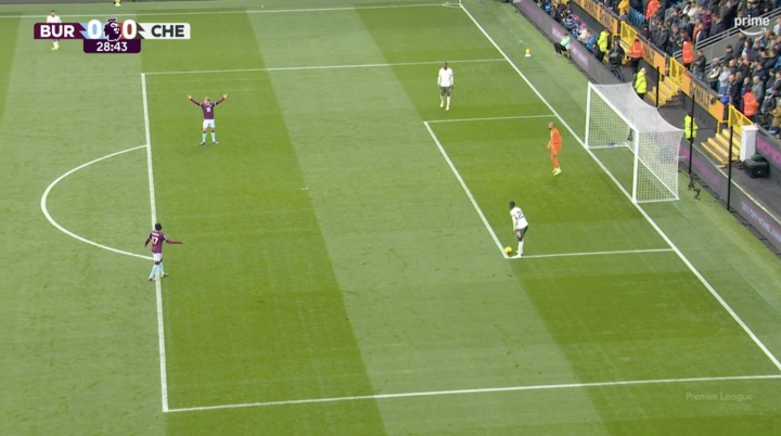 上半场第29分钟,切尔西门球,桑切斯将球踢给查洛巴,伯恩利球员插足禁区逼抢,查洛巴用手将球按在地上示意球还没开出,伯恩利球员向裁判抗议查洛巴手球,但裁判莫得示意。