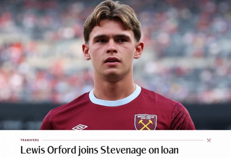 9月2日讯 西汉姆说明,19岁中场球员刘易斯-奥福德租赁加盟英甲斯蒂文尼奇,租期一个赛季。